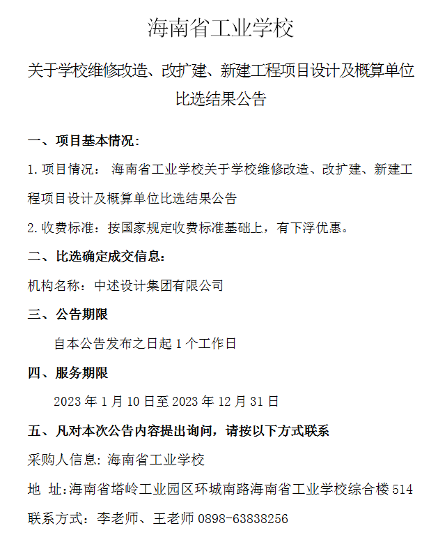 - 开云(中国)关于学校维修改造、改扩建、新建工程项目设计及概算单位比选结果公告
